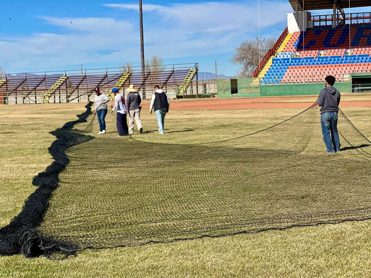 Cuauhtémoc, Chih.- Para Seguridad de aficionados y protección de gradas la Directiva de la Sexta Zona que encabeza Luis Pérez, comenzó con la instalación de más de 2000 metros cuadrados de nueva malla de 119 metros de largo por 17 altura de extremo a extremo. La inversión es de 251 mil pesos de acuerdo a la información de la Jurisdicción VI.