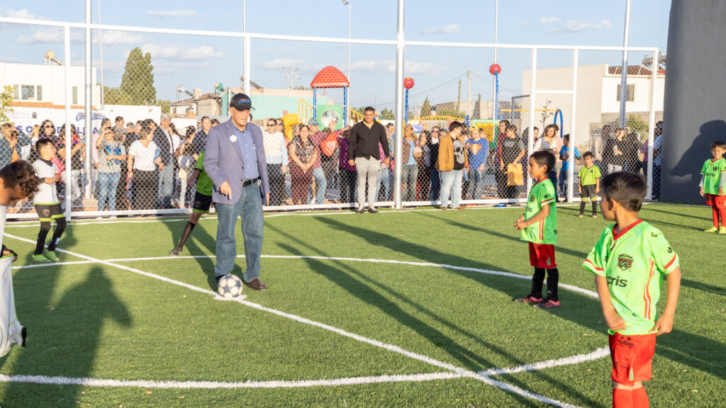 Cuenta con una cancha de futbol de sala, de pasto sintético, de 472 metros cuadrados, que estrenaron alumnos de la escuela de futbol Bravos, generación 2015-2016, a cargo del profesor Antonio Lechuga “Robiño”.