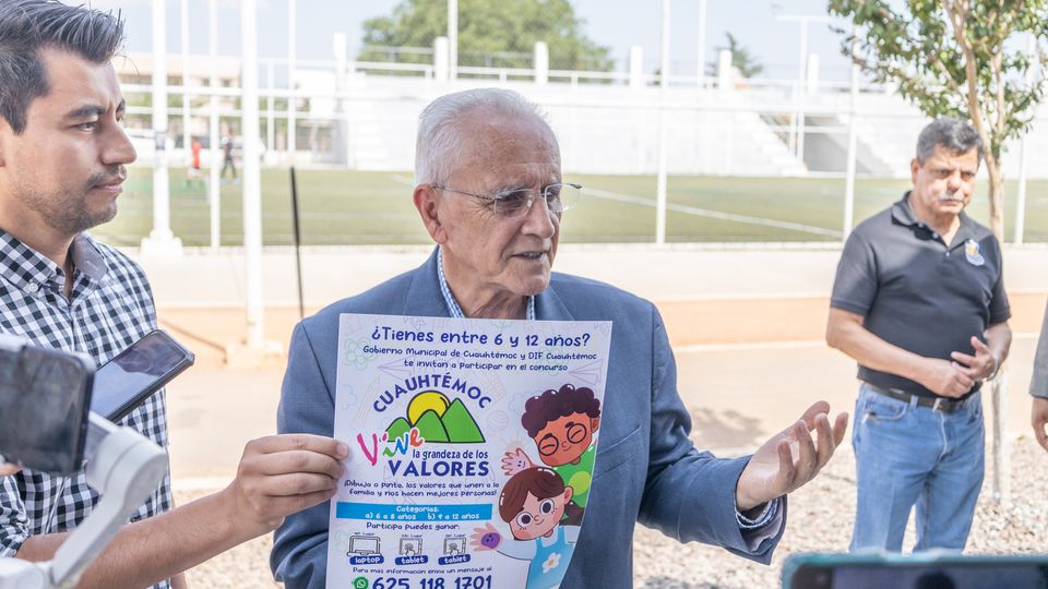 Cd. Cuauhtémoc, Chih.- El presidente municipal Beto Pérez invitó a las niñas y los niños de Cuauhtémoc, de entre 6 y 12 años de edad, a participar en el concurso “Cuauhtémoc Vive la Grandeza de los Valores”, donde los participantes dibujarán los valores que unen a la familia y nos hacen mejores personas.