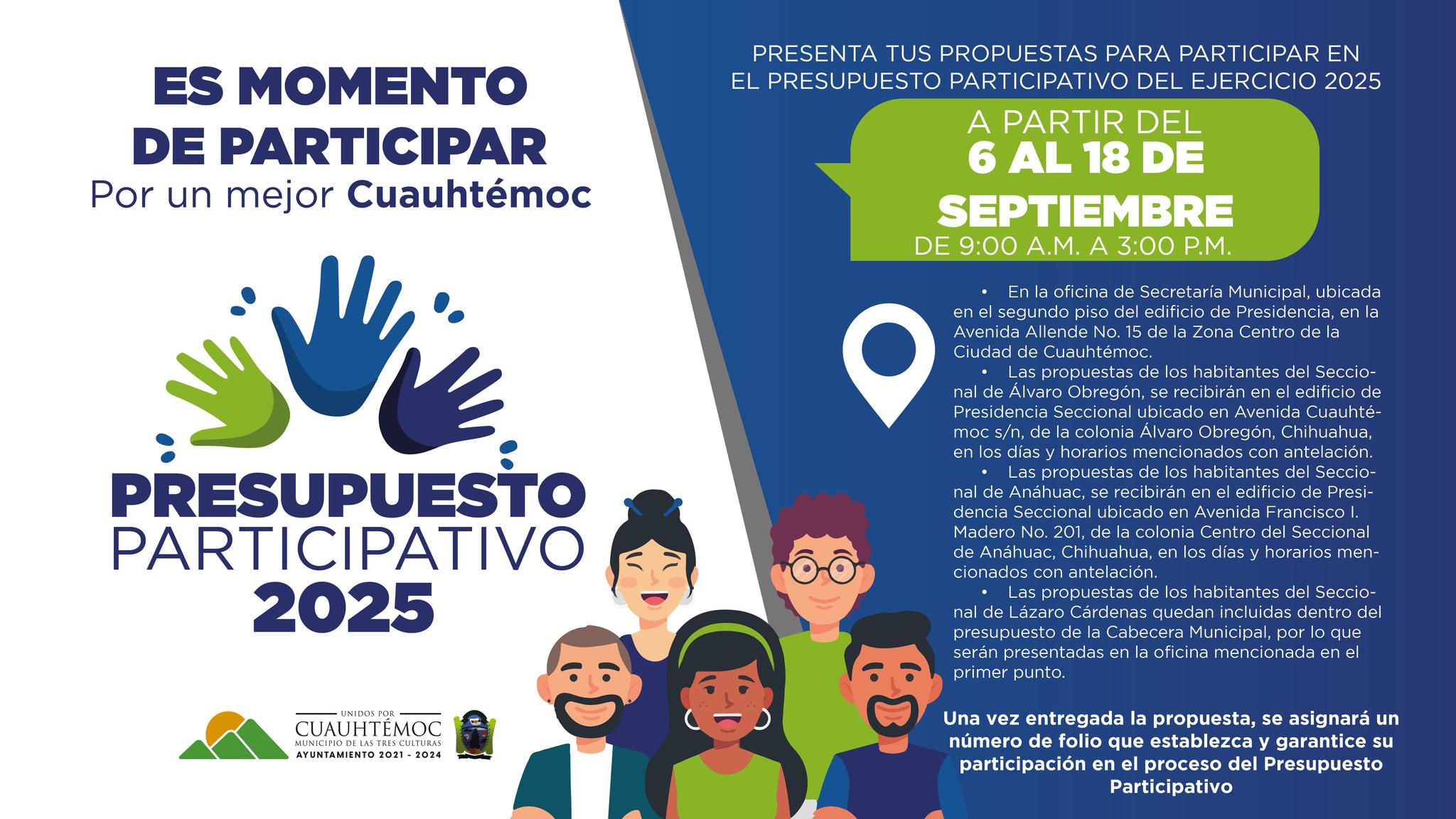 Presenta tus propuestas para ser parte del presupuesto participativo del ejercicio 2025.