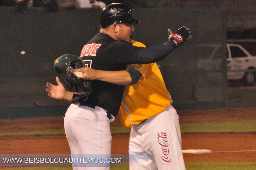 Cd. Cuauhtémoc Chih.- Al momento de venir a la caja de bateo como tercero en el orden de Manzaneros, Jesús Avilés López, se encamino a saludar y felicitar a Carlos Teller, un gesto que le reconoció la afición, independiente de la polémica que se suscitó con el record en Ponches.