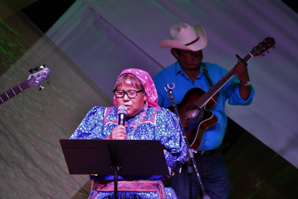 Una a una fue explicando las melodías, sorprendiendo al público con la constante temática sobre el hambre, la escases del maíz y el derecho que tienen también ellos como indígenas de comer tres veces al día.