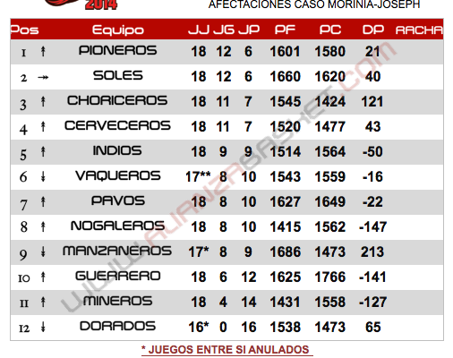 No nadamas Manzaneros se vio tuvo estas broncas, también los Vaqueros de Saucillo, donde solo les quitaron 4 victorias, el más afectado fueron los Dorados de Chihuahua, quienes perdieron todos sus juegos ganados quedando con record de 0-18, esto por alinear a un jugador con las mismas características de Morinia.
