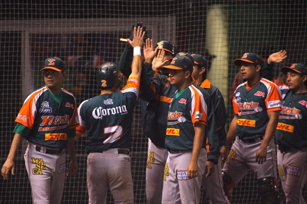 Abajo 2-0 en la quinta, con apenas un imparable ante Daniel Cabrera, los melenudos comenzaron su reacción con sencillo de Ricardo Serrano, imparable de Israel Núñez que, sumado a error del jardinero derecho Sergio Contreras dejó corredores en las esquinas, y un infield hit productor de Wimberly por la intermedia. Tras pasaporte a Jaime Pedroza que llenó las bases, José Juan Aguilar rodó por segunda donde Eugenio Vélez comenzó el intento de doble play salvador, pero Aguilar venció el tiro del campo corto Carlos Gastélum tras pivotear permitiendo que Núñez registrara la del empate. Pero Wimberly, quien corría desde segunda, nunca dejó de correr, siguió hasta home y anotó la de la diferencia.