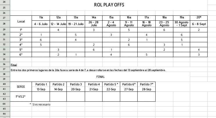 Si el rol se va como esta, los equipos que finalicen en segundo, tercero y cuarto lugar, abrirán la primera jornada en casa los días 4, 5 y 6 de Julio, teniendo que jugarse jueves, viernes y sábado, debido a que el domingo 7 es día de elecciones electorales.