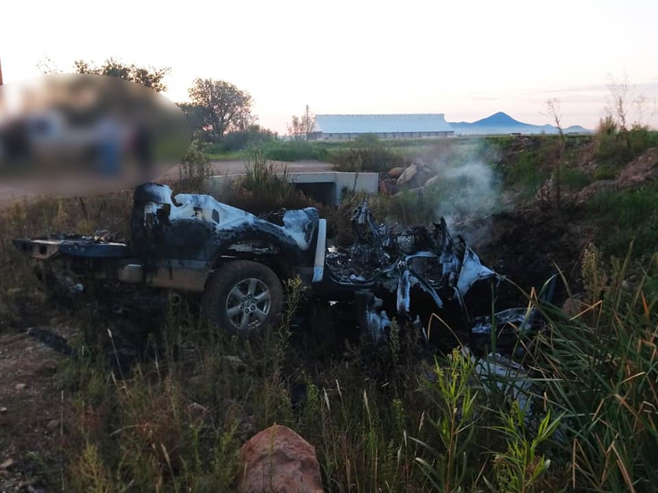 Ciudad Cuauhtémoc, Chih. – A raíz de un reporte generado en el sistema de emergencias 911 durante la madrugada, y posterior a la localización de dos cuerpos sin vida en el puente a desnivel del campo Pampas, se informa que, en labores de patrullaje y reconocimiento de unidades de seguridad de diferentes corporaciones en ese sector, se localizaron los restos de un vehículo calcinado.