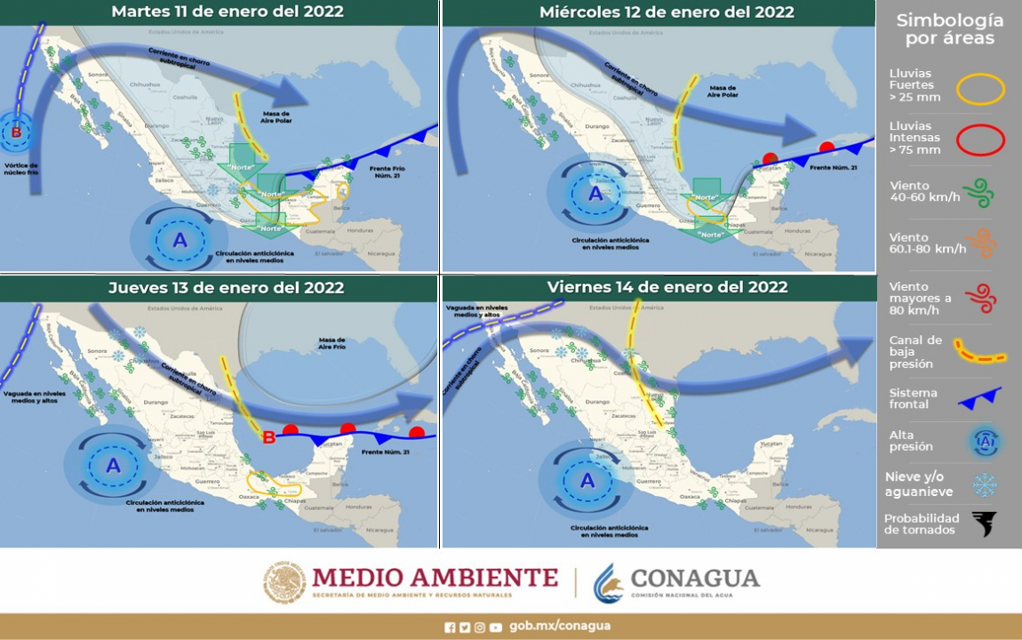 El reporte del Servicio Meteorológico Nacional, detalla que el paso por territorio estatal del Frente Frío No. 21 y la masa de aire polar que lo impulsa, mantendrá condiciones de muy frías a frías por la mañana y de frescas a templadas por la tarde.
