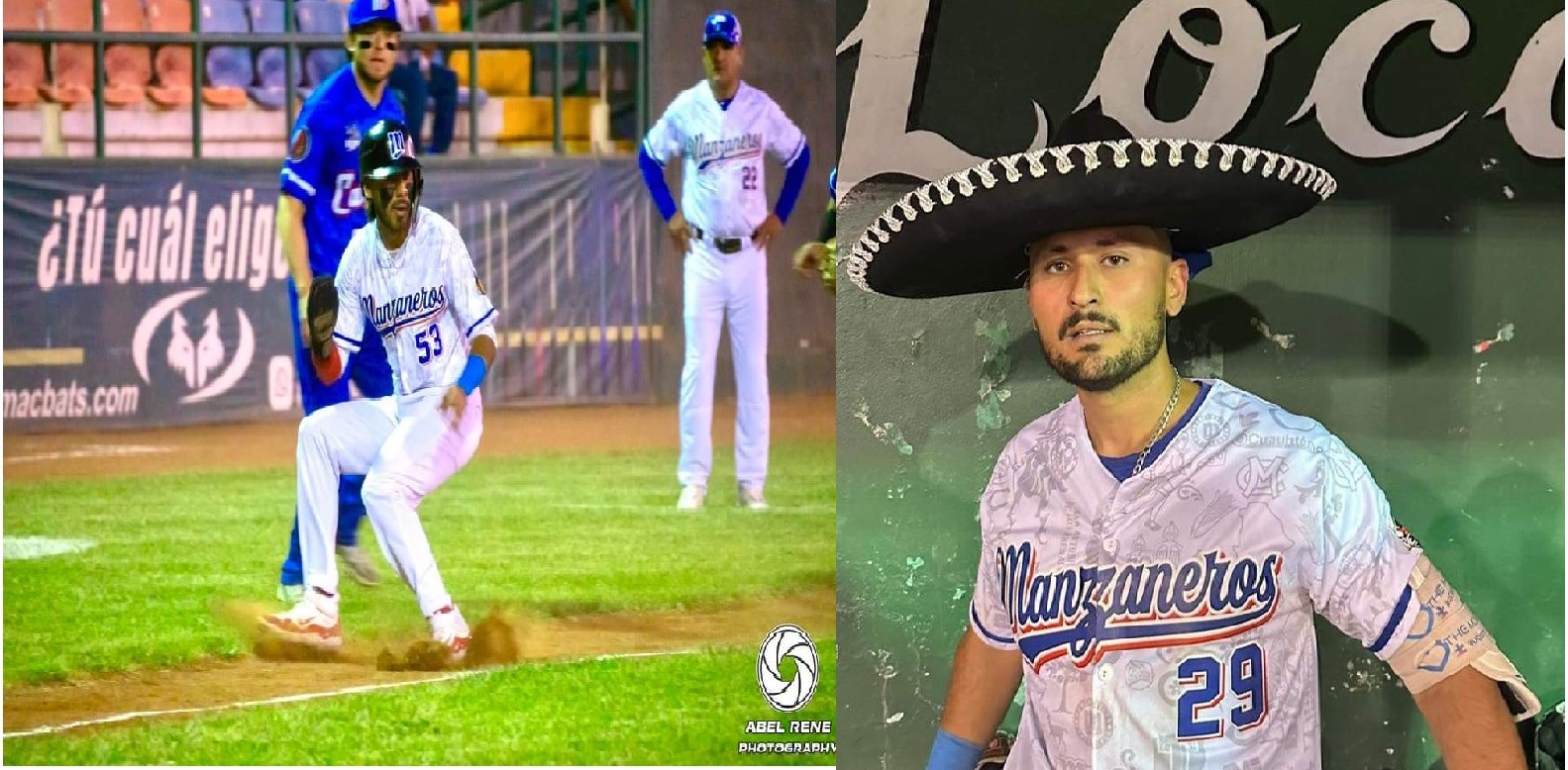 Yousamot cota conectó el primer cuadrangular de la temporada en la séptima entrada. Foto Manzaneros de Cuauhtémoc sexta Zona y Rene Fotografhy