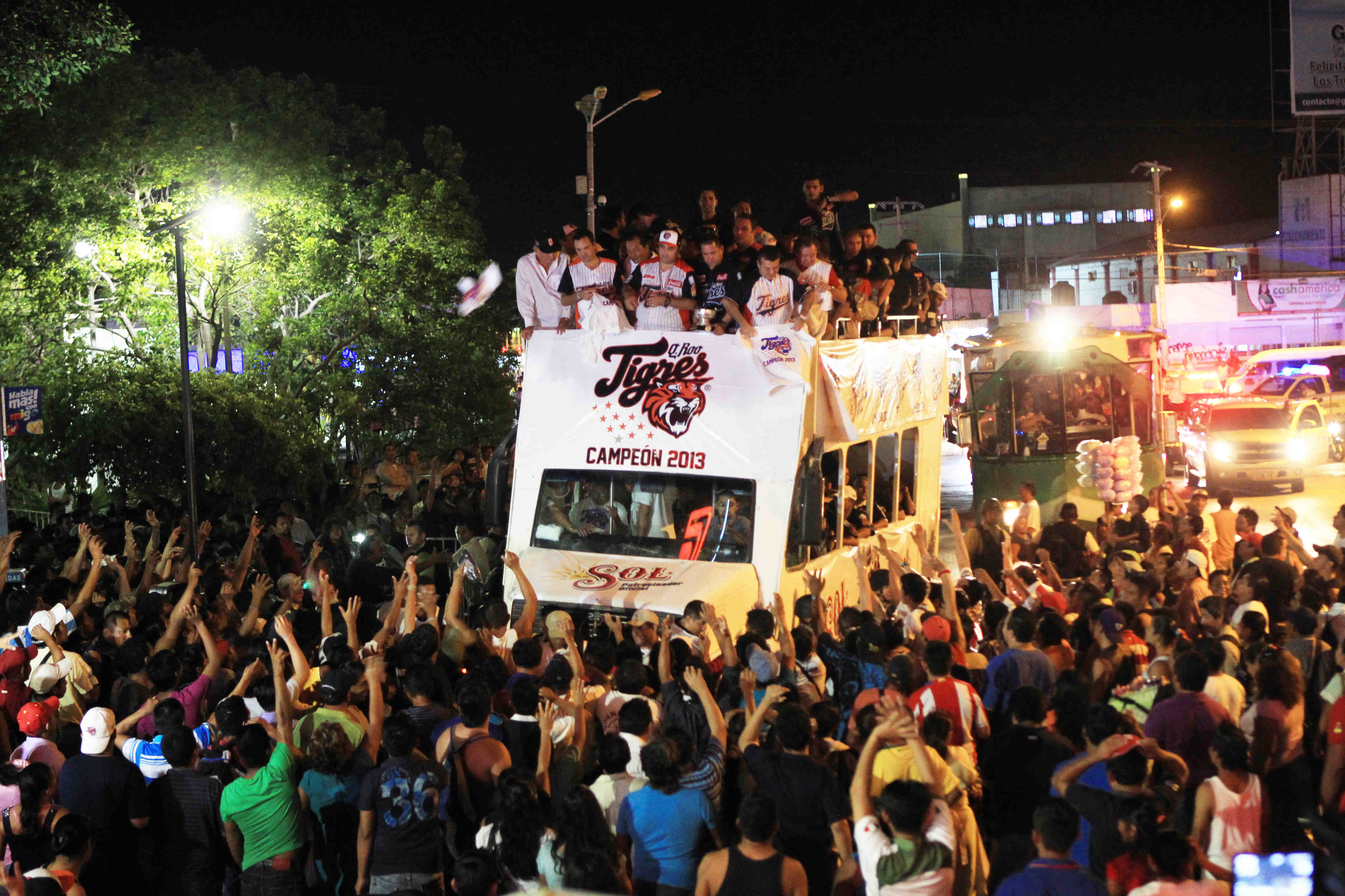 En punto de las 18:30 horas un camión descubierto comenzó el recorrido por varias avenidas de la ciudad de Cancún, y en el cual se encontraba el equipo completo de los felinos, seguido por dos camiones más donde se encontraban las familias de los jugadores, así como las porristas e invitados, custodiados todos por el Tigre Chacho quien iba montado en una moto de tránsito municipal.
