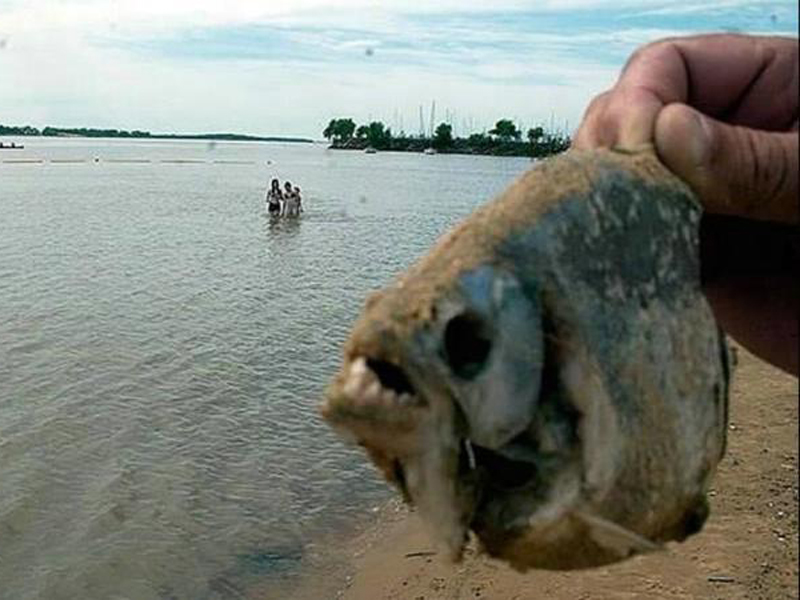 Las palometas son peces carnívoros (serrasalmus aureus y serrasalmus marginatus), con prominentes mandíbulas con dos hileras de dientes cada una, que habitan las aguas de los ríos Paraguay y Paraná.