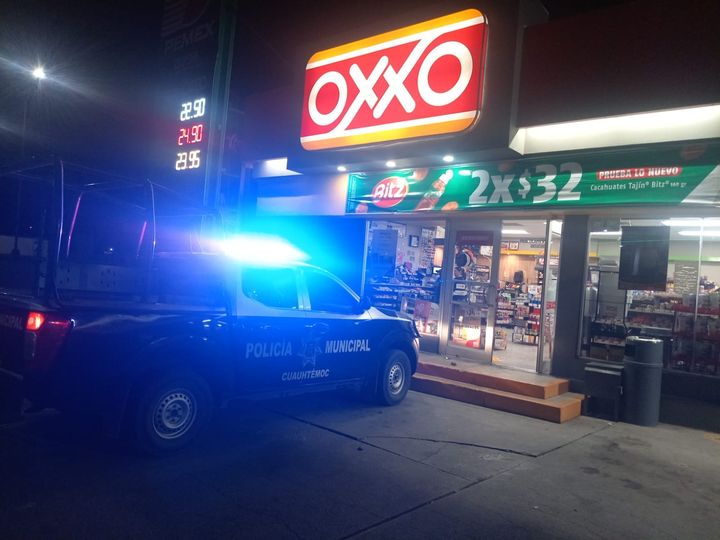 Cuauhtémoc, Chih.- La Policía Municipal acudió al boulevard Fernando Baeza y 94, a las 23:55 horas del 16 de mayo, ya que se reportó a un grupo de menores de edad ebrios, que trataron de comprar cervezas y al negarles la venta, ocasionaron daños en la tienda de conveniencia OXXO que se ubica en este punto.