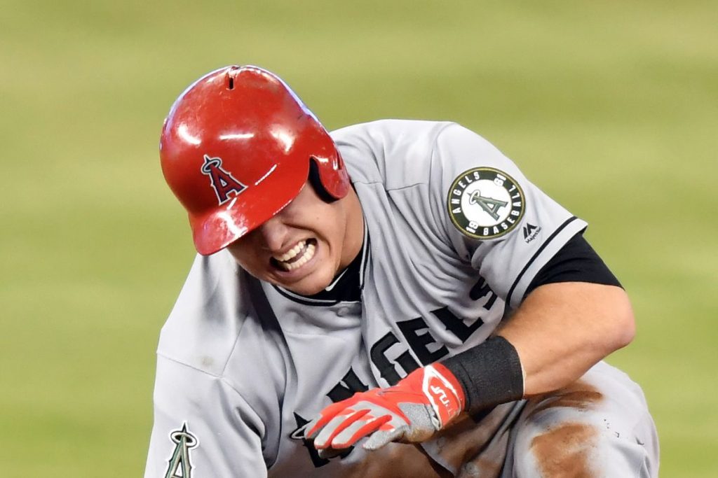 Los Angelinos colocaron el lunes al reinante Jugador Más Valioso de la Liga Americana en la lista de incapacitados por primera vez en su carrera. El jardinero se lesionó el día previo al deslizarse de cabeza por un robo de base en segunda base en Miami.