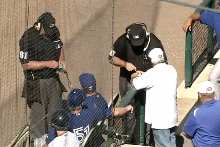 En el sexto inning, el manager de Toronto, John Gibbons, desafió una decisión. Pidió que los umpires revisaran después de que se marcó safe a Rahl cuando el tiro del campocorto Munenori Kawasaki hizo que Jared Goedert se despegara de la primera almohadilla.