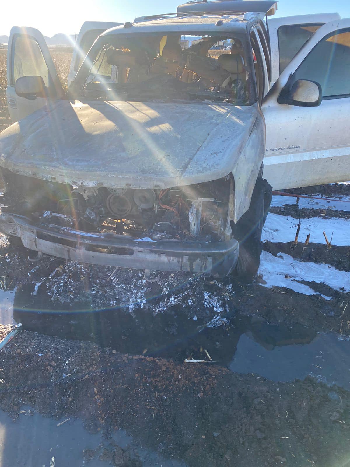 Cuauhtémoc, Chih.- La presencia de una camioneta en llamas con un hombre sin vida al interior, generó movilización hace unos minutos en el kilometro 23+500 del Corredor Comercial, a la altura del campo 6 y medio.
