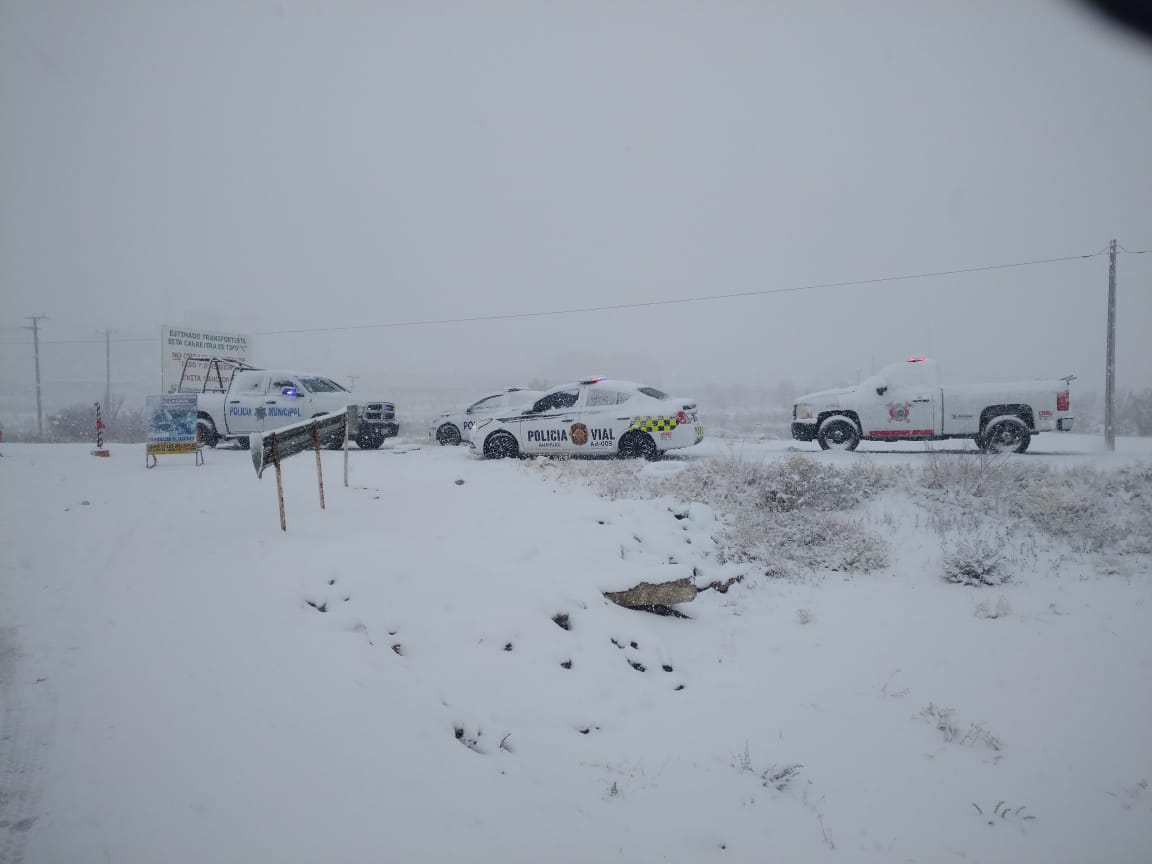 En el kilómetro 49, entronque hacia Ejido Lázaro Cárdenas y el municipio de Bachíniva, así como en toda la zona conocida como los “cienes” la precipitación en forma de nieve es constante, se recomienda mucha precaución a los conductores y usuarios de estás vías de comunicación, favor de circular a velocidad moderada y con luces encendidas, cualquier apoyó que se requiera marcar al 911 ó a la Comandancia de la Policía Municipal en Álvaro Obregón 625-58- 400-56.