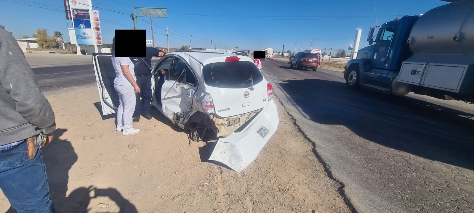 El incidente se suscitó cuando el vehículo Nissan al tratar de incorporarse al corredor comercial a la altura del kilómetro 14, fue impactado por la pick up que circulaba en su vía libre.
