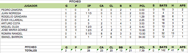 www.beisbolcuauhtemoc.com.– Tomando en cuenta el numero minino de apariciones al bat, el cual es 9, Orlando Marin aparece como el mejor bateador con un porcentaje de 0.545, bateando de 11-6. En el departamento de Pitcheo, Rogelio Gandara tiene una efectividad de 1.29 en carreras limpias admitidas con 7 entradas de labor.