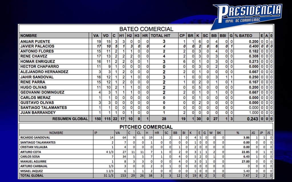 www.beisbolcuauhtemoc.- La Sexta Zona, por medio de su compilador oficial, hace llegar los numeritos por equipo hasta la segunda jornada. La próxima semana se darán a conocer los líderes de cada departamento.