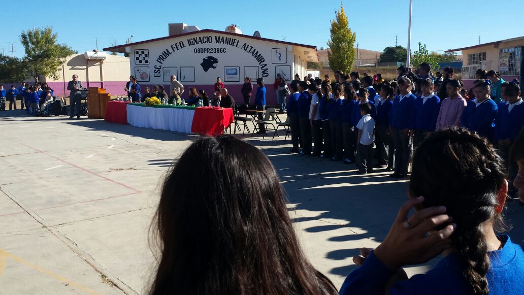 Cuauhtémoc.- El alcalde Heliodoro Juárez González asistió esta mañana a la Escuela Primaria Federal Ignacio Manuel Altamirano para recordar al destacado mexicano que comparte nombre con esta institución.