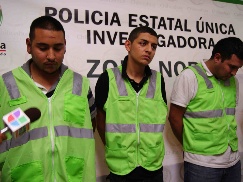 El pasado lunes fueron presentados por la FGE ante los medios de información, los residentes de Chaparral y Las Cruces N.M, Carlos Mora, Félix Arturo y Fernando Gómez, quienes de acuerdo a la versión oficial tenían dos años cobrando el derecho de piso a cerca de 80 comerciantes de Ciudad Juárez, motivo por el cual cruzaban la frontera cada semana.