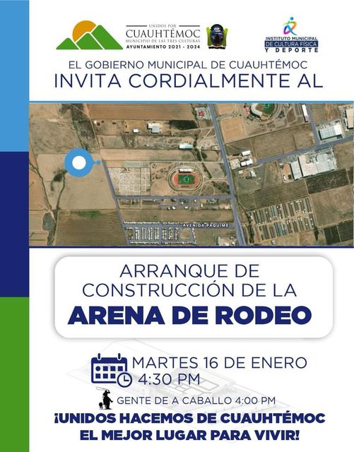 Reitera la invitación a todas las familias de Cuauhtémoc y a los aficionados del rodeo. Será a espaldas del Panteón Municipal número 3.