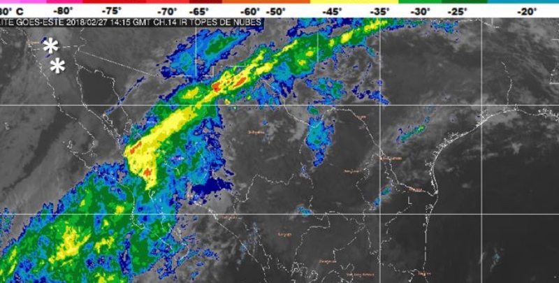 Con base al pronóstico del Servicio Meteorológico Nacional, el frente frío No. 34 se combinará con la Cuarta Tormenta Invernal en el sur de California, E.U.A., favoreciendo tormentas fuertes a muy fuertes, descenso de temperatura y rachas de viento superiores a 60 km/h en dicha región, así como posibilidad de caída de nieve o aguanieve en zonas montañosas de Baja California, Sonora y Chihuahua.