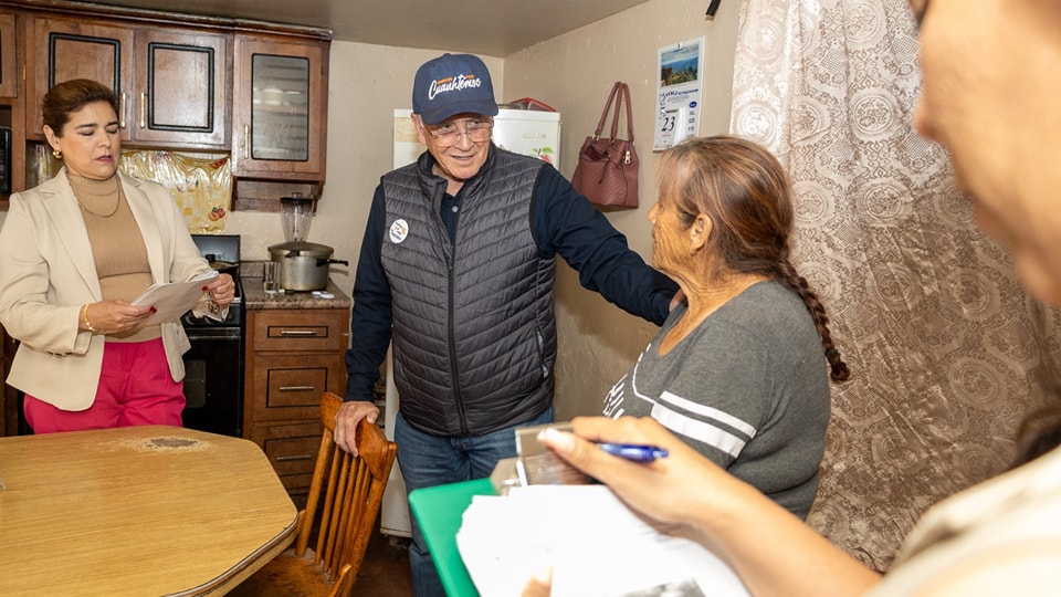 Cd. Cuauhtémoc, Chih.- El presidente municipal Beto Pérez visitó a 20 familias en condiciones de vulnerabilidad, en las colonias Reforma y República.