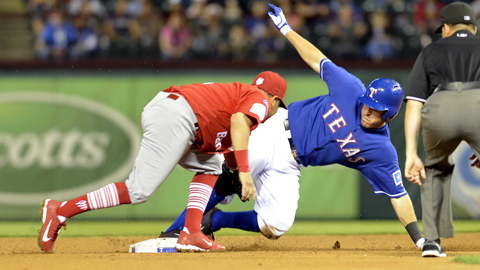 La poderosa ofensiva texana hizo pasar apuros a David Reyes, abridor escarlata, quien permitió la carrera de la quiniela en la primera entrada; un fly de sacrificio del tercera base Adrián Beltré impulsó al shortstop Elvis Andrus.