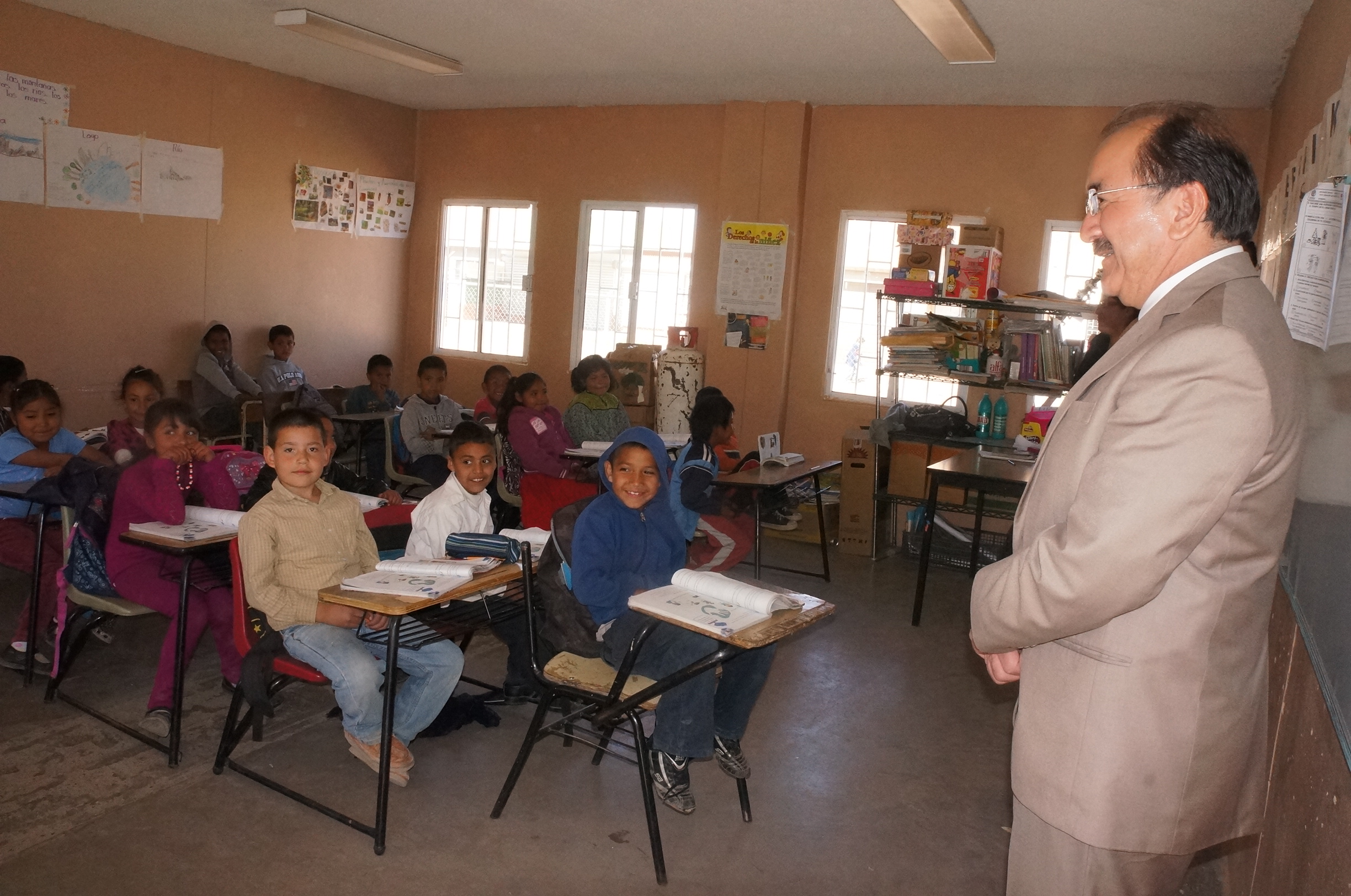 Cuauhtémoc.- El presidente municipal Heliodoro Juárez González acudió a conocer las necesidades de la escuela Rayenari, en la colonia del mismo nombre, y de paso otorgó alimentos a la cocina escolar para que los niños, en su mayoría indígenas, tengan un alimento caliente cada día.