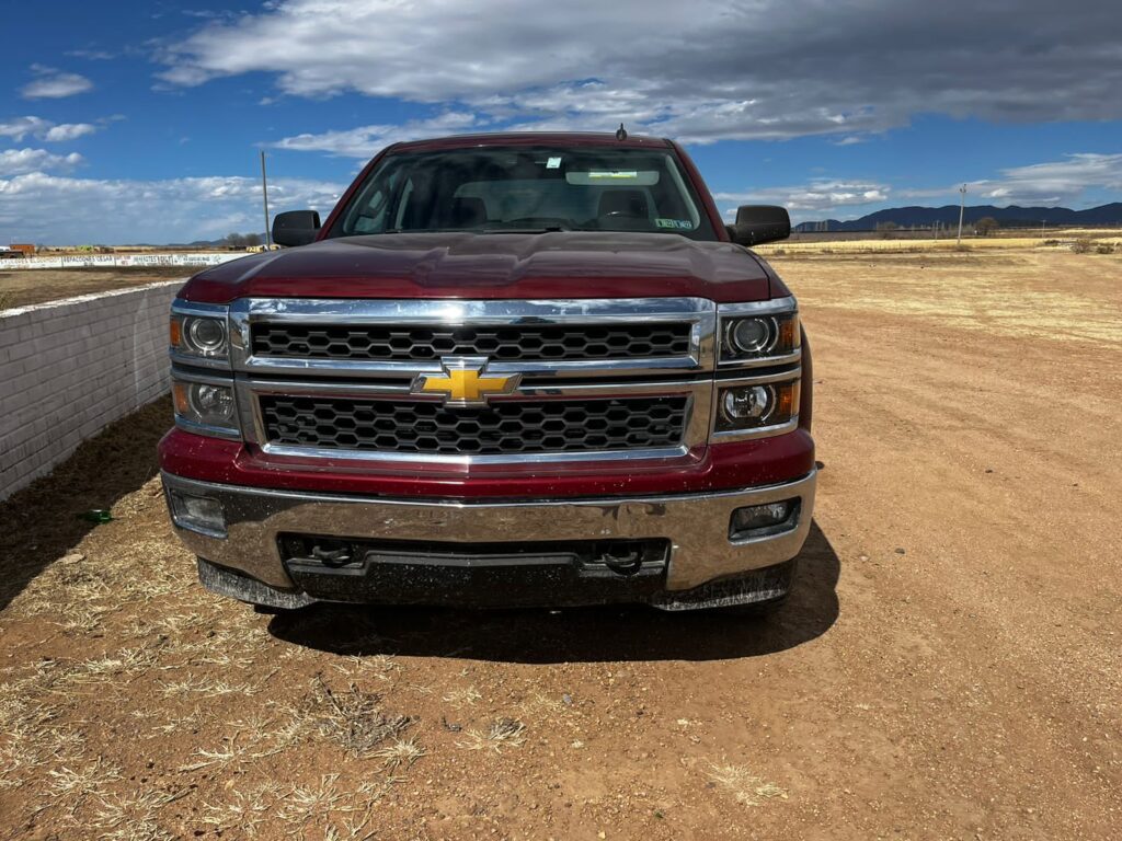 Una pick up de la marca Chevrolet, línea Silverado, color guinda de reciente modelo y un sedán de la marca Hyundai, línea Sonata, modelo 2014, de color azul, ambos con placas de circulación del estado de Chihuahua.