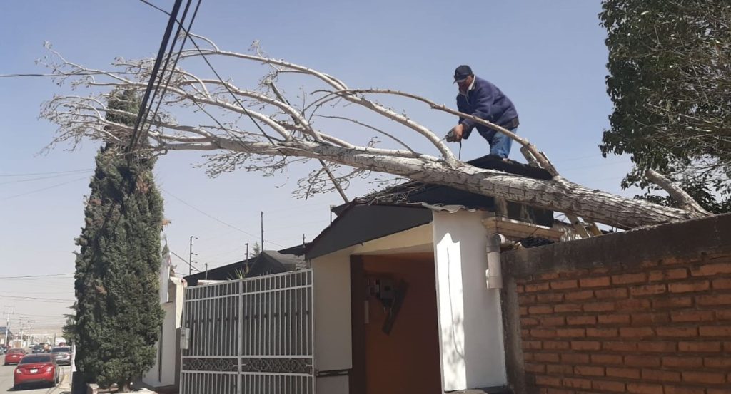 Se informa que las fuertes ráfagas de viento alcanzaron velocidades de 60 a 70 kilómetros por horas lo que ocasionó las siguientes afectaciones: