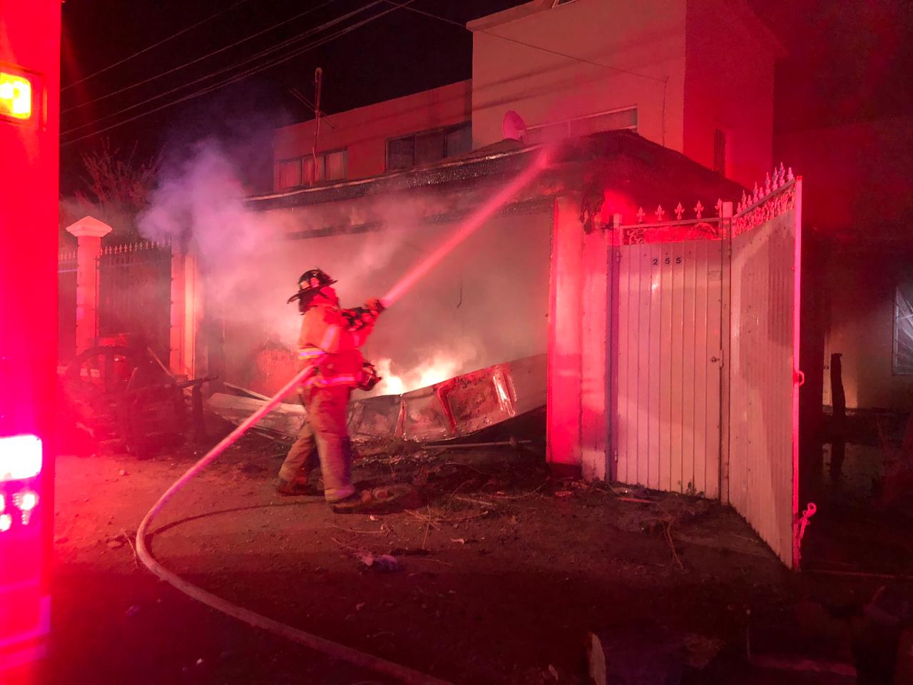 Al llegar al lugar se observó un domicilio en llamas por lo que se solicitó la presencia de personal del Departamento de Bomberos quienes realizan labores de control y contención del fuego, informando que la vivienda se encontraba deshabitada y que el siniestro ocasionó daños materiales en el garaje y varios muebles, desconociéndose hasta el momento las causas que originaron el incendio.