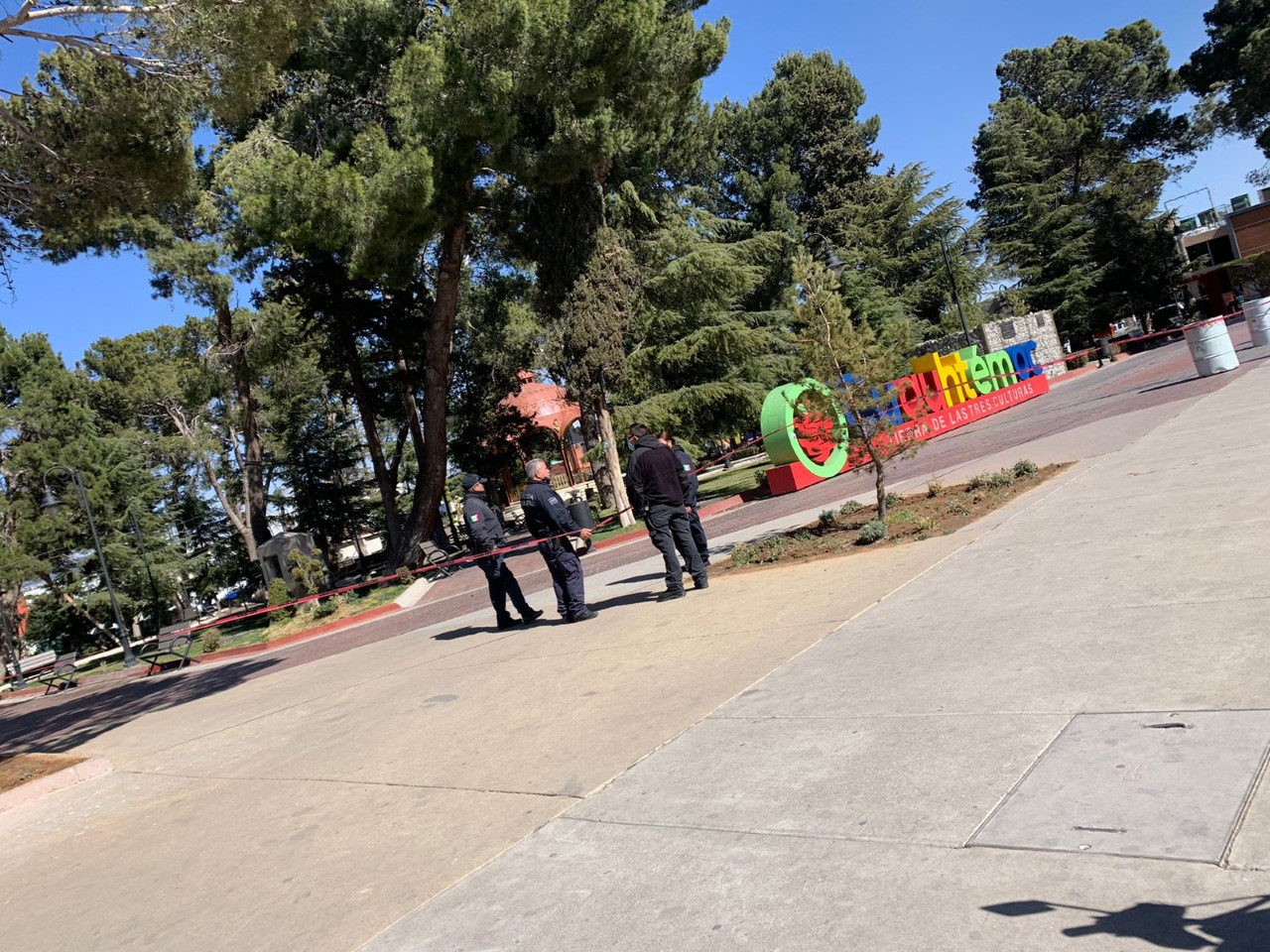 Como parte de las instrucciones de Protección Civil Municipal, se pidió a los oficiales acudir a esta zona para asegurarse de que no haya gente en la plaza, ya que los fuertes vientos pueden ocasionar el derribo de los árboles que hay en este punto.