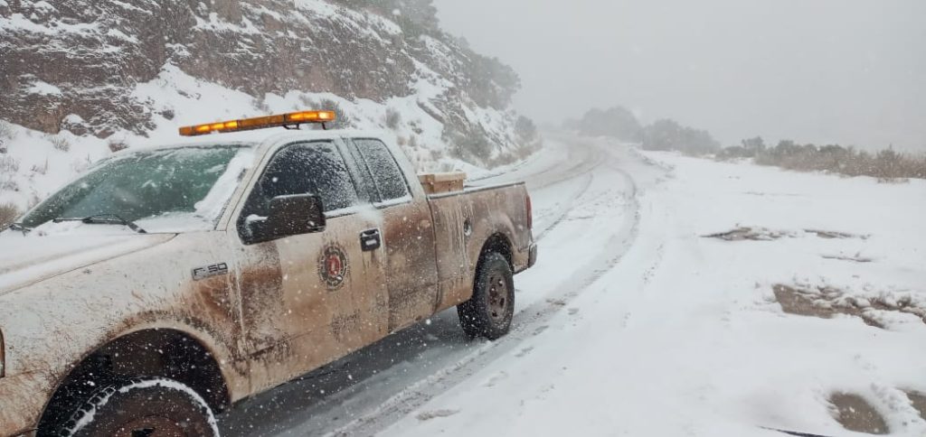 La CEPC informa que la carretera Janos-Agua Prieta se mantiene cerrada desde las 15:00 horas de ayer, debido a una segunda precipitación de nieve; Majalca amanece a -10.1°C, Chihuahua a -2°C y Juárez a -3.4°C