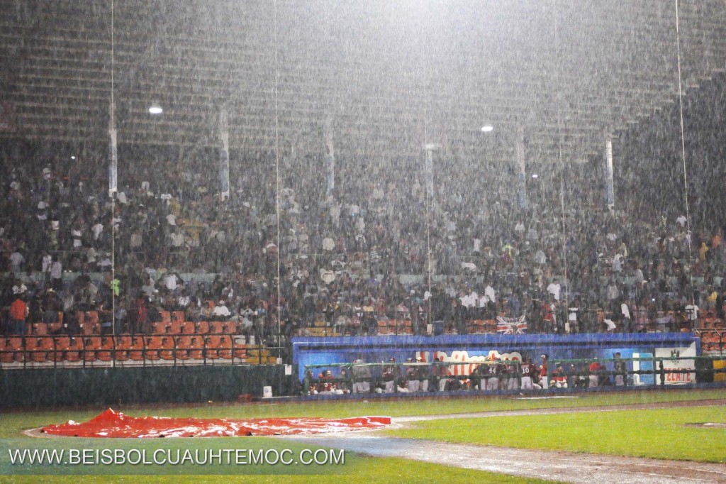 Cuando se disponían a jugar la quinta entrada, el Estadio Cuauhtémoc sufrió un apagón en todas las torres de luz y se dejo sentir la lluvia por lo cual ya no fue posible reanudar el partido.