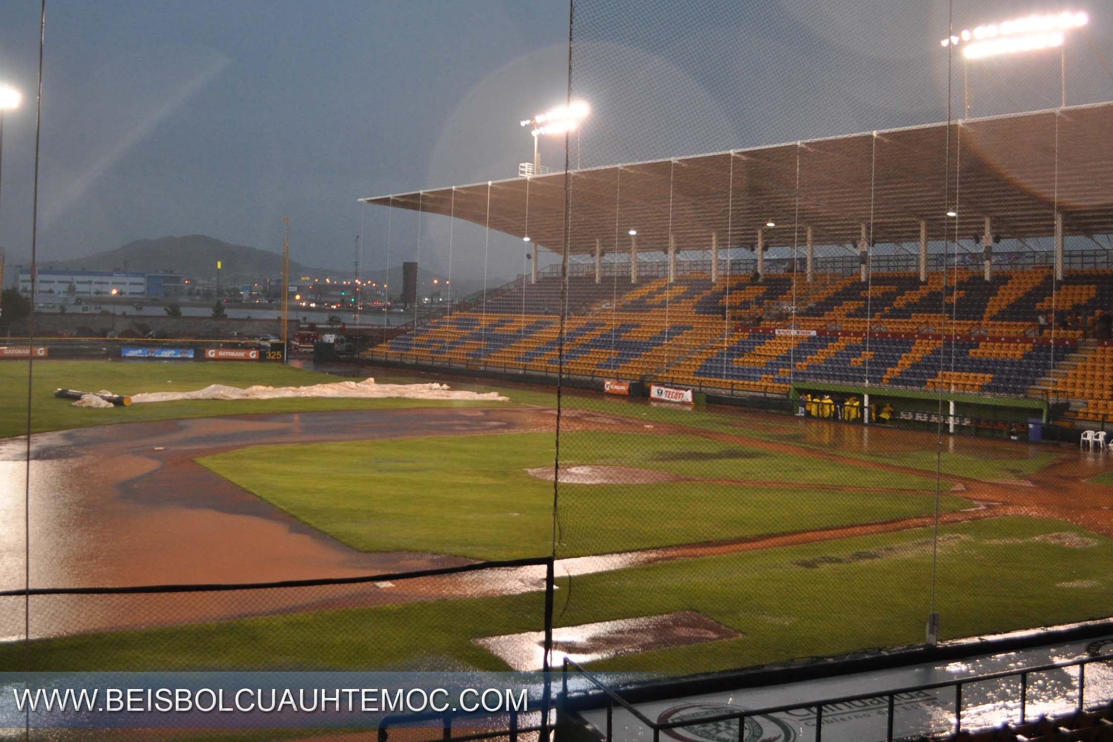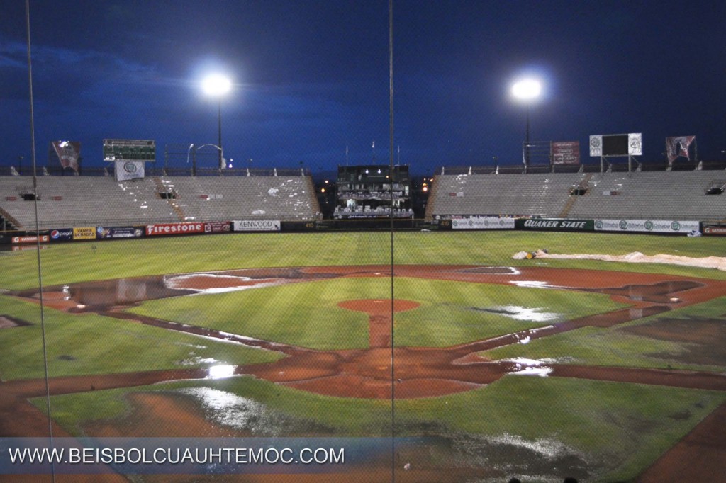 Una fuerte lluvia, acompañada de viento, provocó la suspensión del segundo juego de la serie entre los Dorados locales y los Manzaneros de Cuauhtémoc, cuando estaba por cerrarse el primer episodio, por lo que deberá reanudarse este domingo a las 11:00 horas.