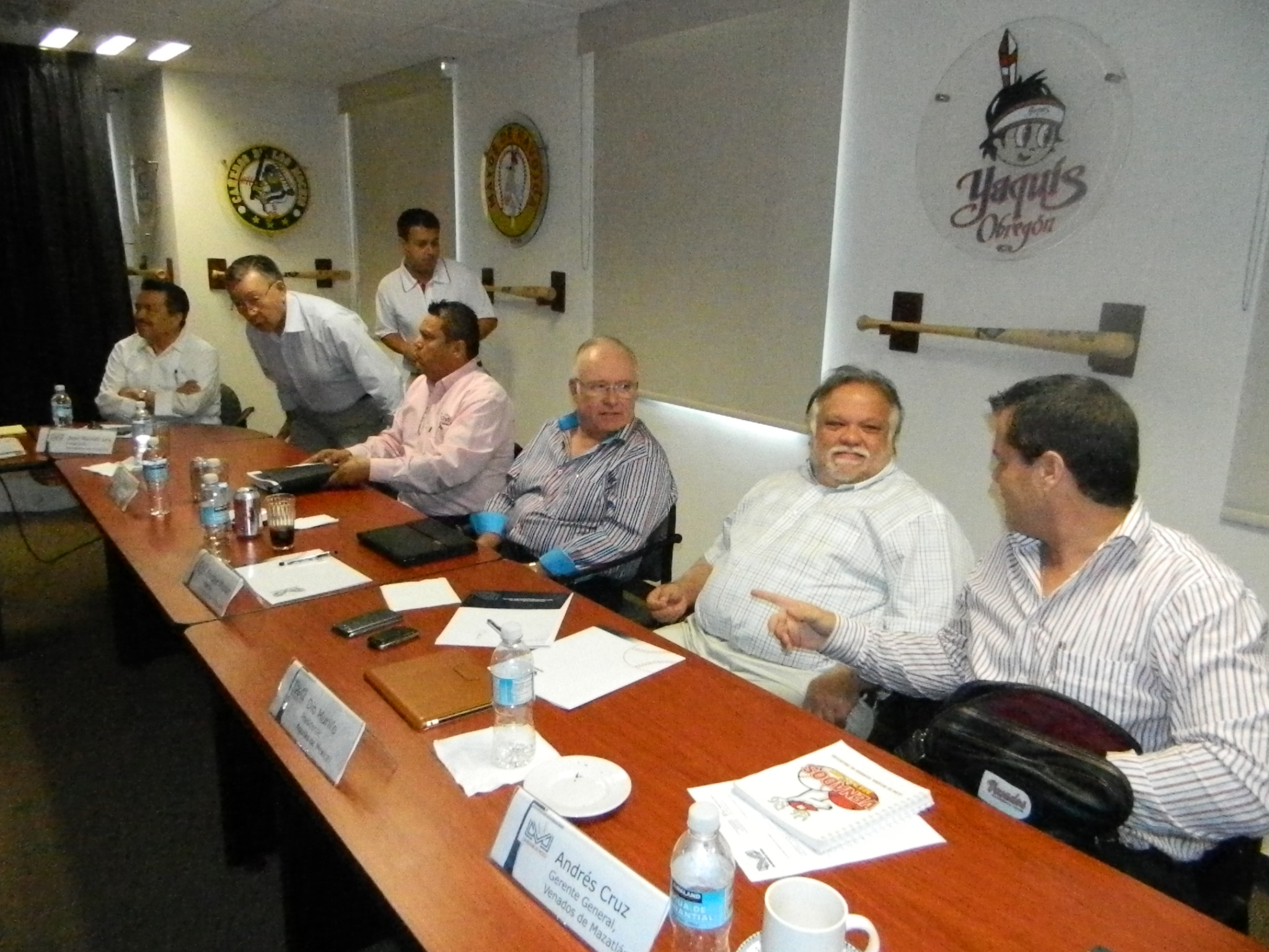 Serios, muy serios, vimos a Víctor Cuevas de los Mayos de Navojoa; y a Joaquín Vega, de Los Cañeros, por cierto sentado a la izquierda, muy pegadito a Omar Canizales.