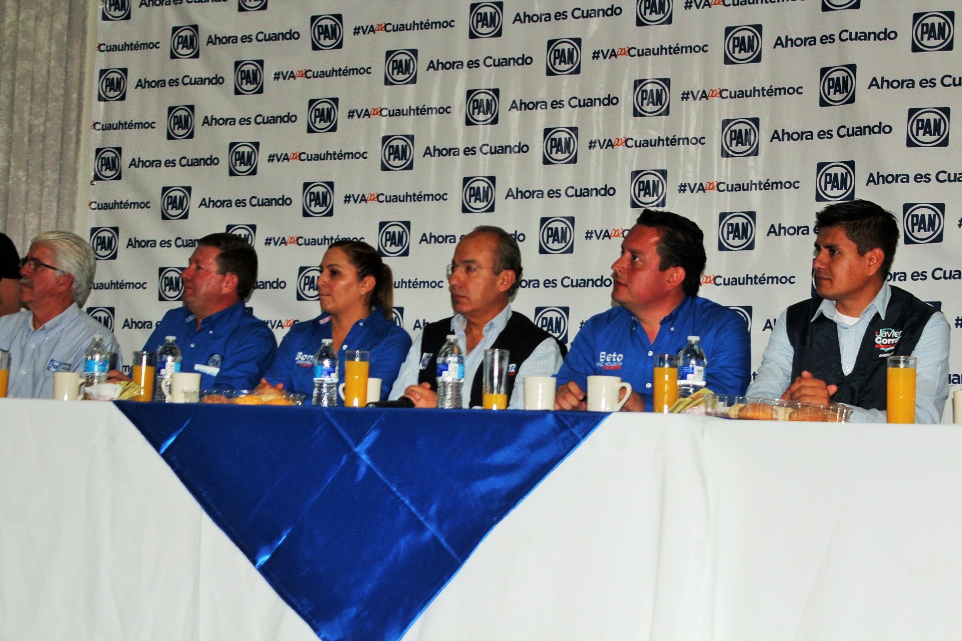 La militancia panista cuauhtemense recibió con gran júbilo al expresidente de México, Felipe Calderón Hinojosa, quien vino a respaldar la campaña de Beto Pérez Holguín, a la Presidencia Municipal de Cuauhtémoc, de quien mencionó fue su colaborador y el encargado de llevar programas como Piso Firme a las comunidades de la zona serrana.