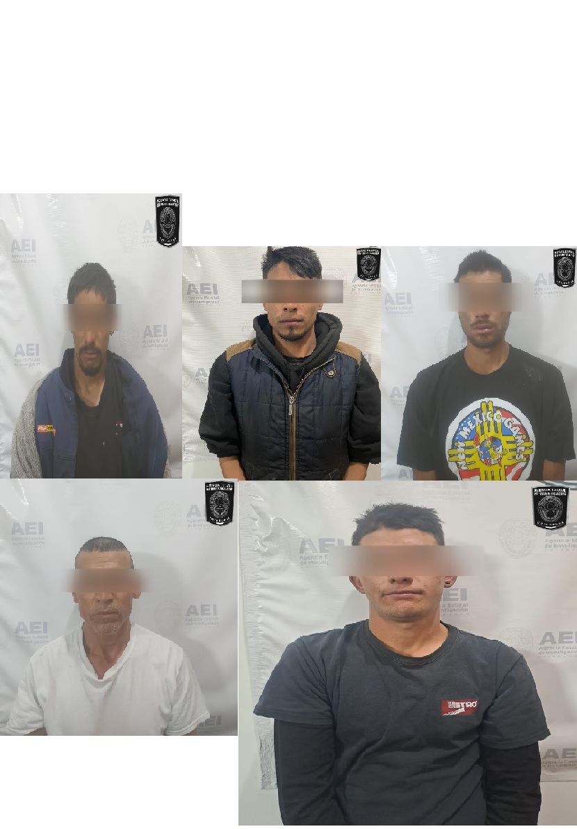 Los detenidos son, Israel M. M., de 23 años de edad; Carlos R. L., de 55 años; Jorge F. R., de 23 años; Ediel Alberto G. F., de 30 años y Cruz F. R., de 30 años.
