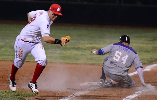 Al tiempo que el abridor indígena Servando López colgó tres ceros consecutivos, los teporacas fabricaron su quinta rayita en el cierre del tercer episodio.