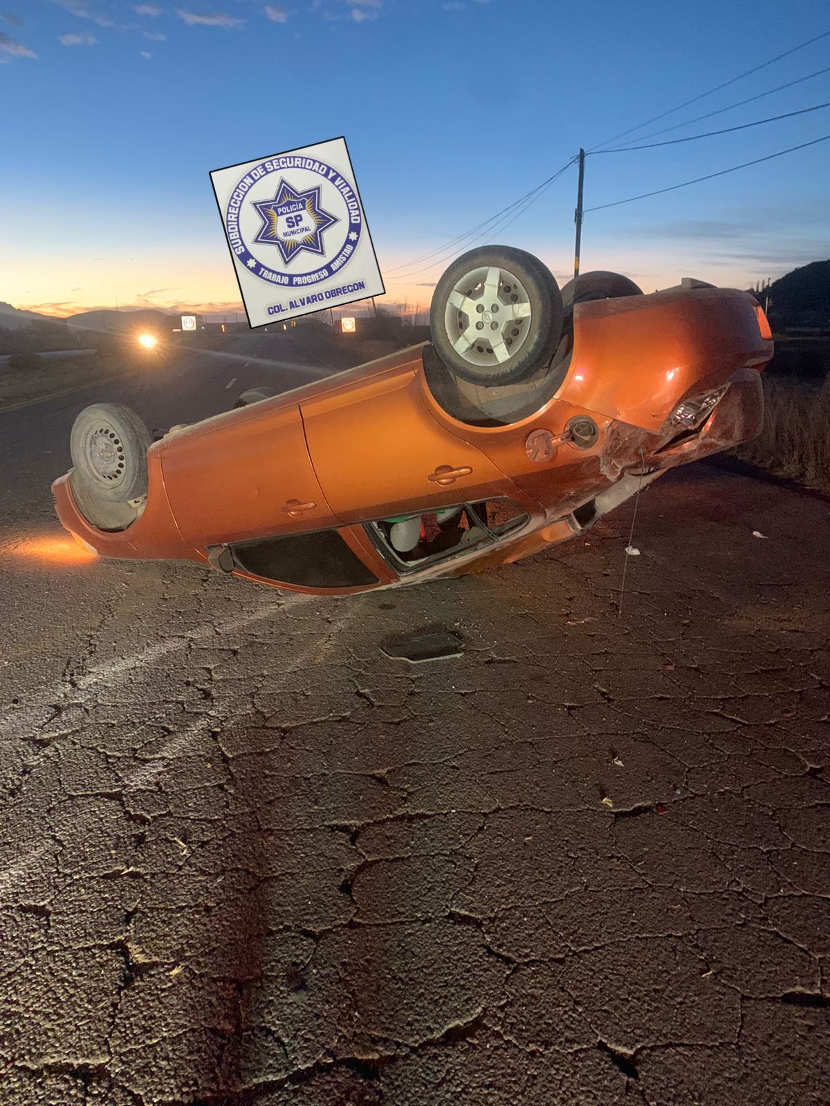 Alvar Obregón, Cuauhtémoc,- La Policía Municipal a través del Mando Único, informo sobre un reporte de una volcadura y choque con objeto fijo se registró a las 7:15 horas, el 19 de diciembre.