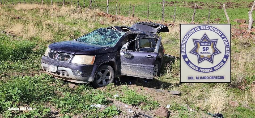 elementos de la Dirección de Seguridad y Vialidad atendieron un hecho de tránsito tipo salida de camino con volcadura, registrado en el kilómetro 28+600 de la carretera estatal número 27, correspondiente al seccional de Álvaro Obregón.